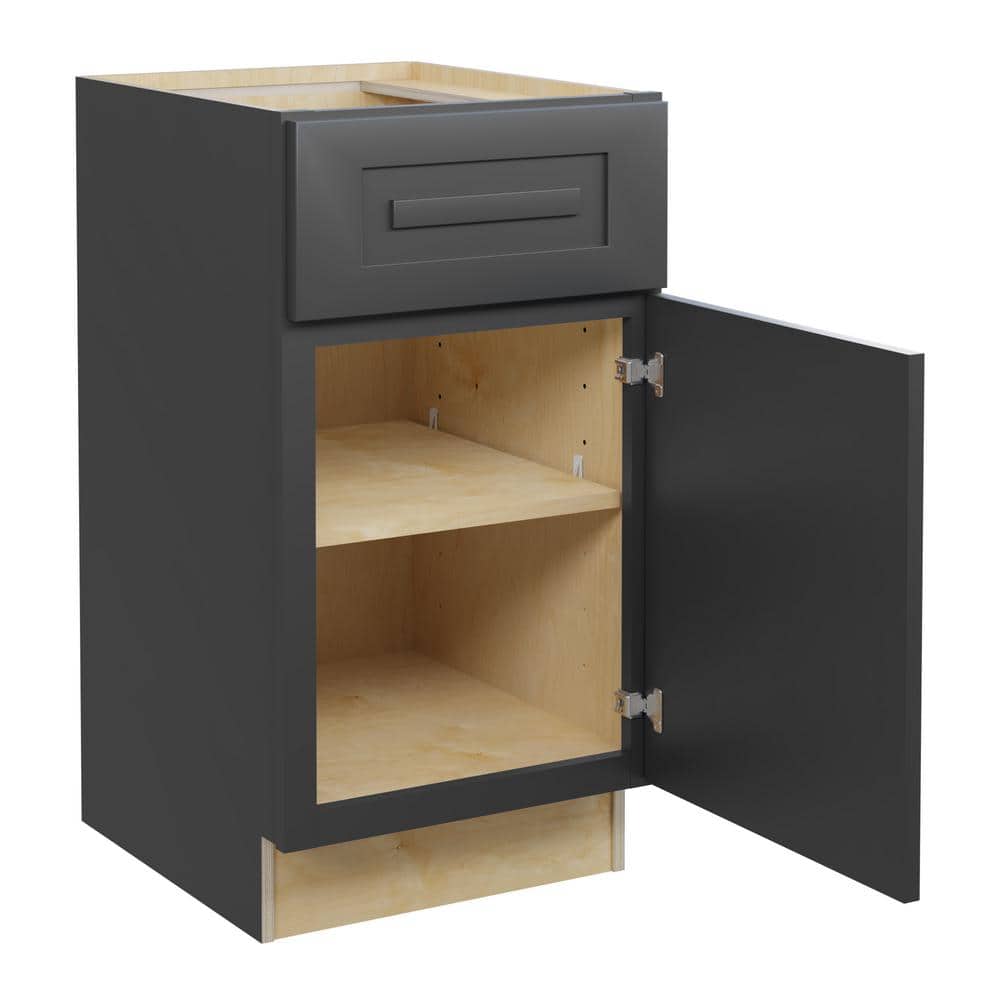 Transform your kitchen into a haven of sophistication with the Grayson Base Kitchen Cabinet in Deep Onyx. Its transitional shaker style and rich finish create a striking visual impact, blending seamlessly with both modern and traditional interiors. Pair it with contrasting countertops or metallic hardware to enhance its luxurious appeal. This cabinet is not just a storage solution but a statement piece that elevates the ambiance of your culinary space.