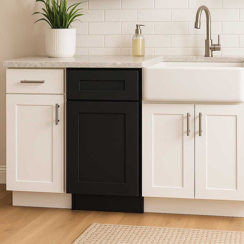 The Grayson Kitchen Cabinet in Deep Onyx is a masterpiece of modern design, blending functionality with a bold aesthetic. Its rich, deep onyx finish adds a touch of sophistication, while the soft-close mechanism ensures seamless operation. Style it with contrasting light countertops or metallic accents to create a striking visual impact. This cabinet is not just a storage solution but a statement piece for any contemporary kitchen.