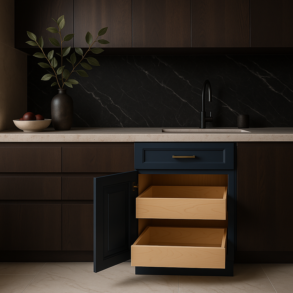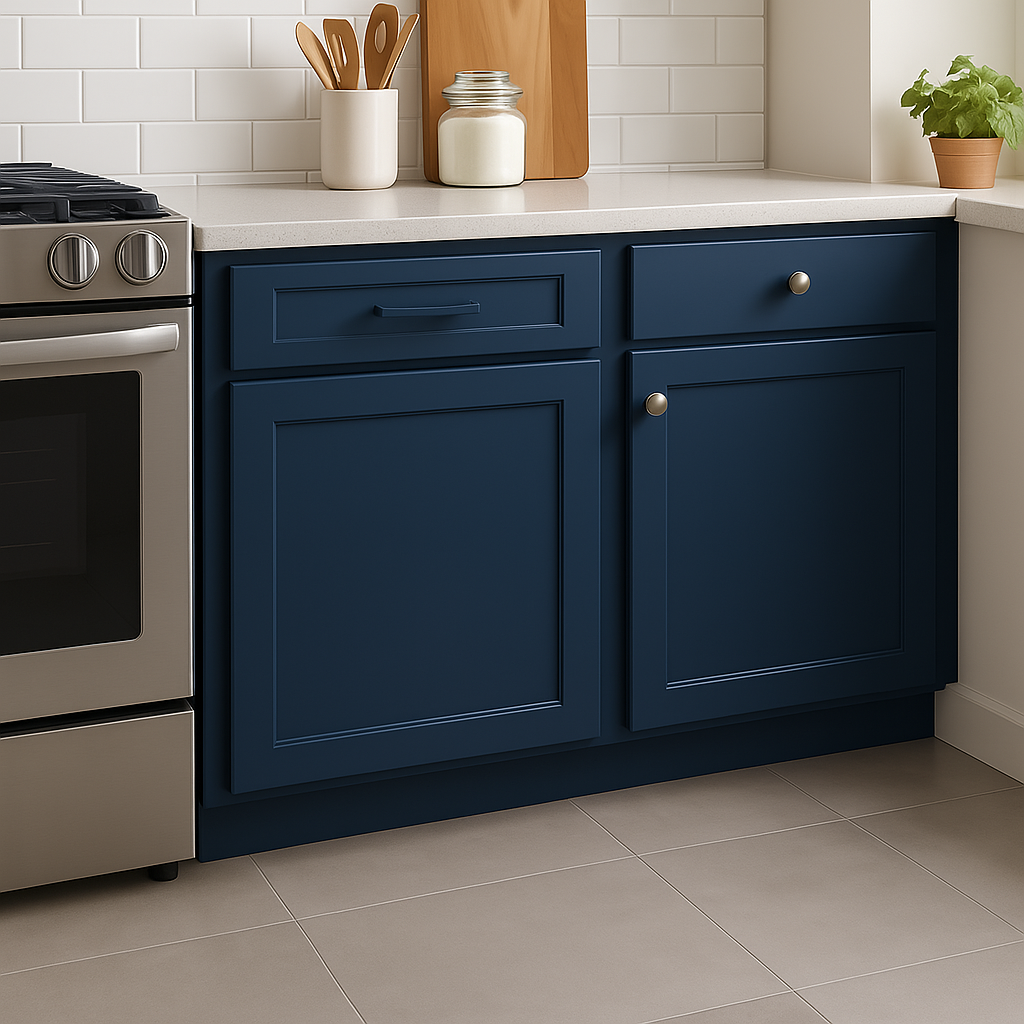 • Elegant Design: Transitional shaker style in a deep mythic blue adds sophistication to any kitchen.