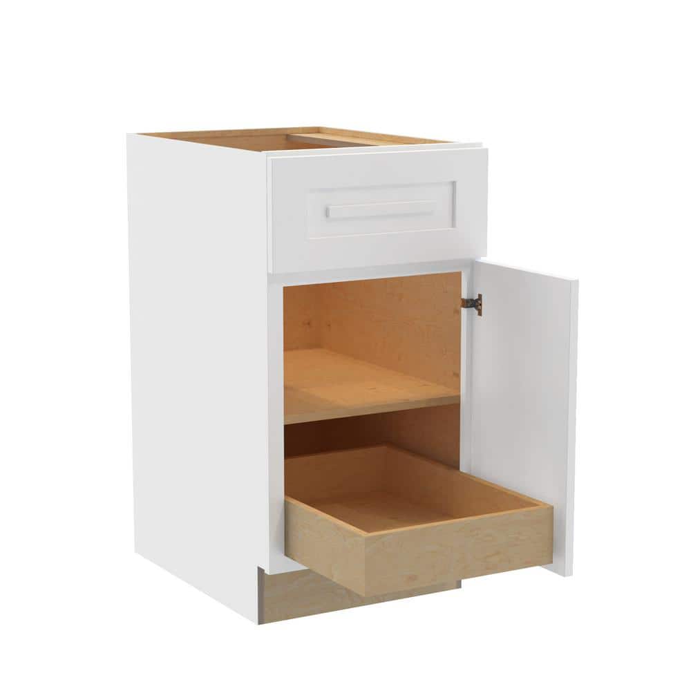 The Grayson Kitchen Base Cabinet in Pacific White is a masterpiece of functional design and aesthetic appeal. Its transitional Shaker-style door with a raised square panel adds a touch of sophistication, while the soft close features ensure a quiet and luxurious experience. Pair it with coastal accents or modern hardware to create a kitchen that exudes charm and tranquility. This cabinet is not just a storage solution but a statement of refined taste and enduring quality.