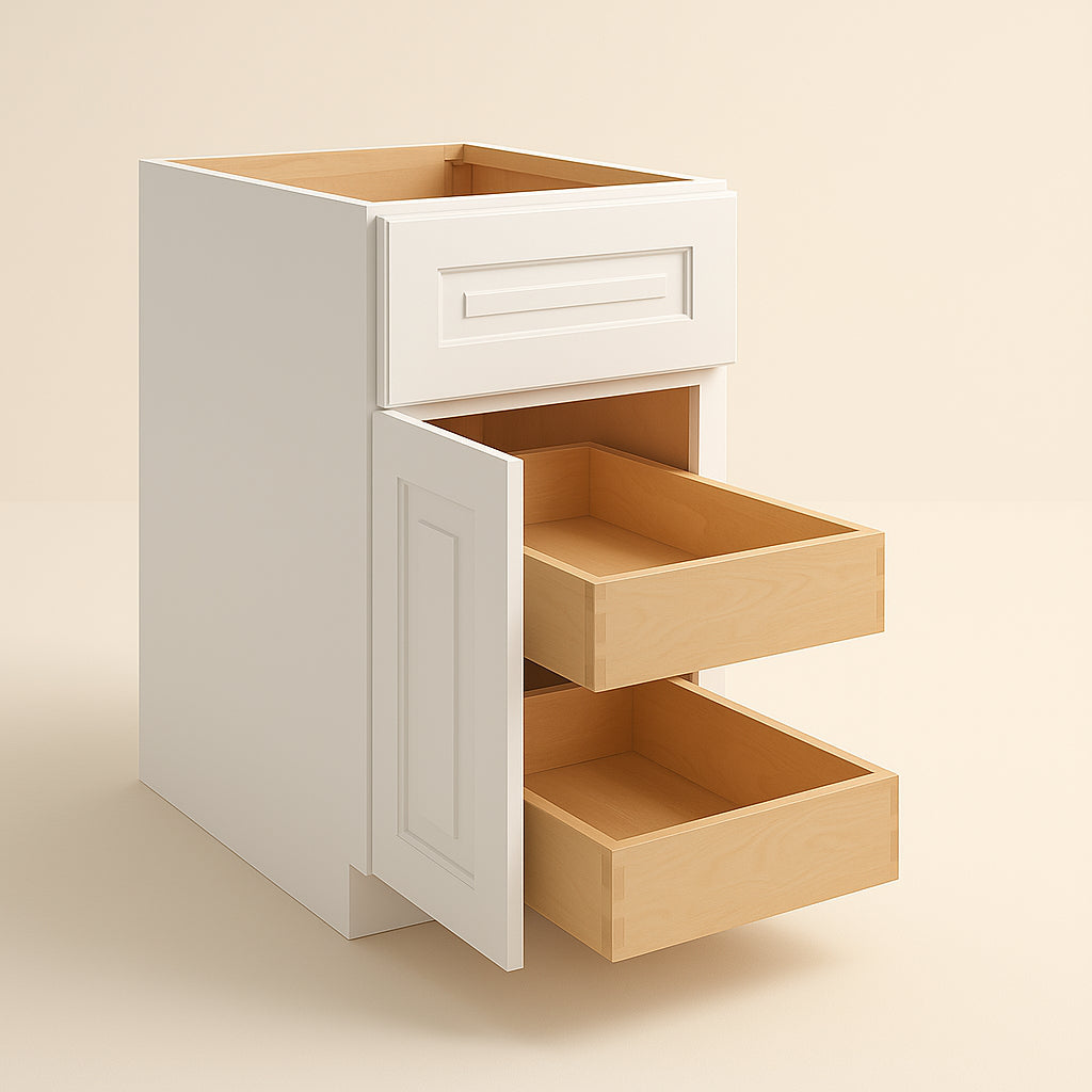 The Grayson Kitchen Cabinet is a harmonious blend of functionality and style, perfect for transforming your kitchen into a sophisticated space. Its Pacific White finish exudes a crisp, clean aesthetic, while the raised panel shaker design adds a touch of modern elegance. The integrated spice trays offer a practical yet stylish solution for organizing your culinary essentials. This cabinet is not just a storage unit; it's a statement piece that enhances the luxury and utility of your kitchen.