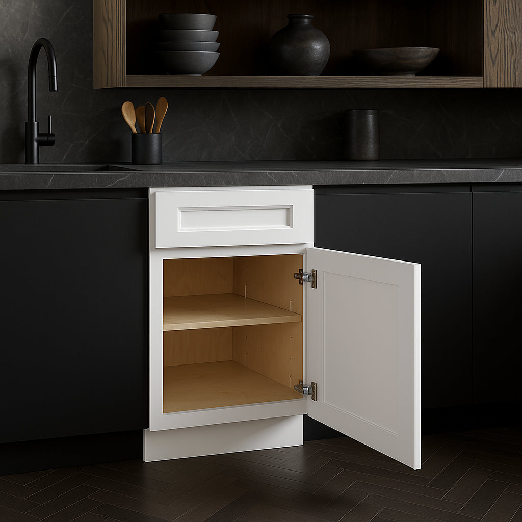 Kitchen Cabinet Features Adjustable Shelves, Finished Interior, Full Depth Shelves, Moisture Resistant, Soft Close Doors, Solid Wood, Structural Toe Kicks Included