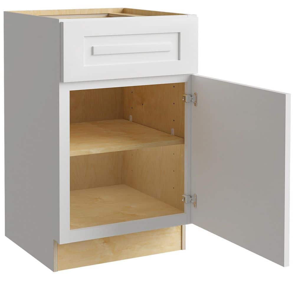 The Grayson Base Kitchen Cabinet by Home Decorators Collection combines durable all-plywood construction with a Pacific White finish for a clean and elegant look. Featuring soft-close doors and drawers, adjustable shelves, and a framed design, this cabinet offers both style and functionality.