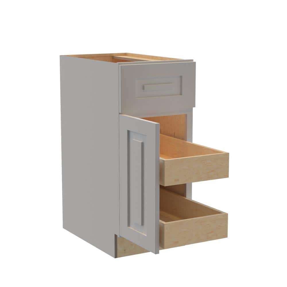 The Grayson Kitchen Cabinet by Home Decorators Collection combines durability and elegance with its pearl gray finish and transitional shaker style. Featuring soft-close technology and all-plywood construction, it offers both functionality and timeless design for a sophisticated kitchen.