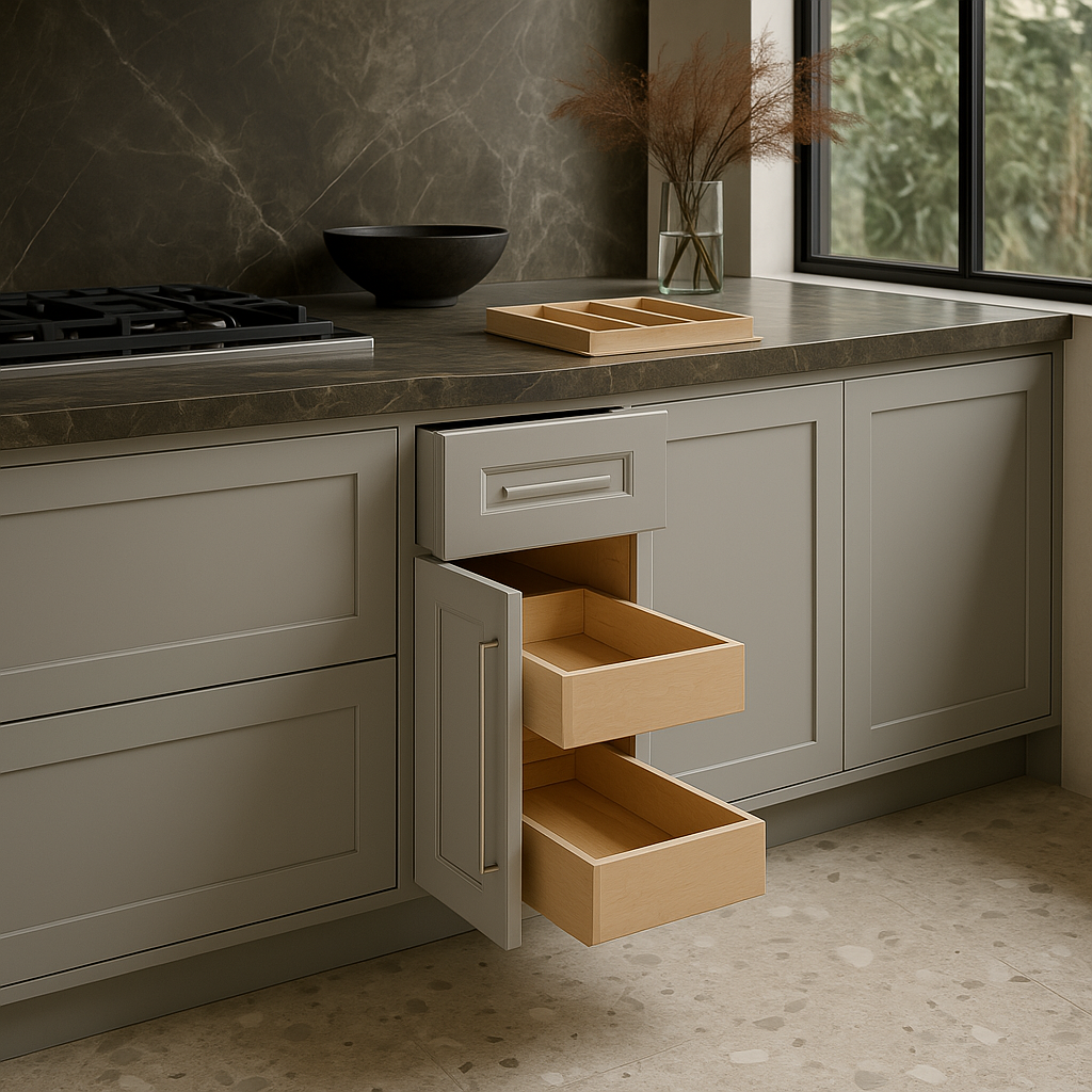 Kitchen Cabinet Features Dove Tail Drawers,Finished Interior,Full Depth Shelves,Full Extension Drawers,Modular,Moisture Resistant,Soft Close Doors,Soft Close Drawers,Solid Wood,Structural Toe Kicks Included