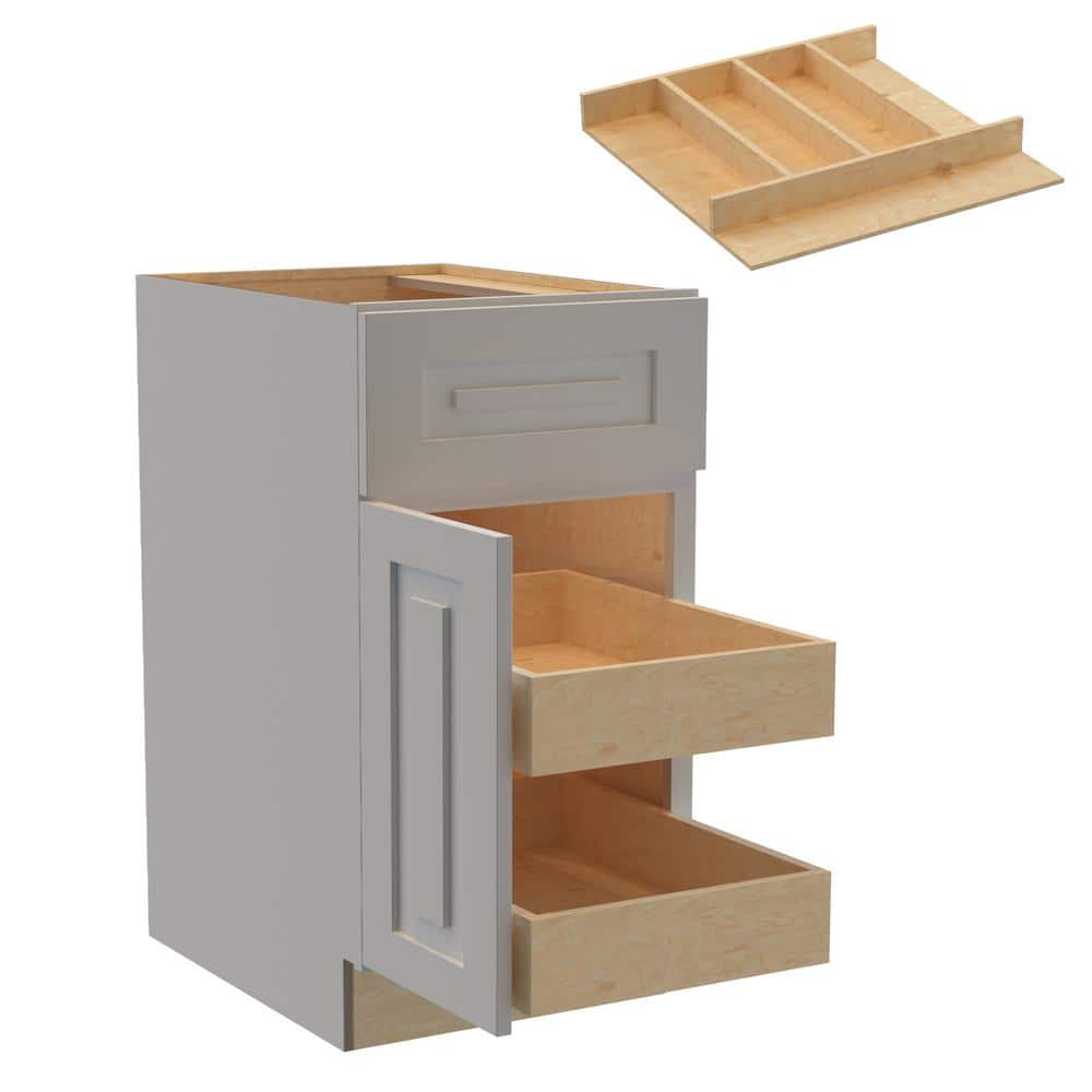 The Grayson Kitchen Base Cabinet by Home Decorators Collection combines timeless design with modern functionality. Featuring a pearl gray finish, soft-close doors and drawers, and durable plywood construction, this cabinet is perfect for enhancing your kitchen's style and efficiency.