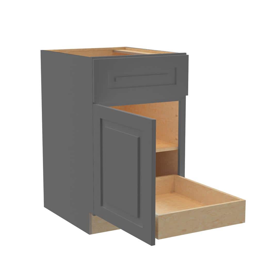 The Grayson Deep Onyx Kitchen Cabinet by Home Decorators Collection combines modern elegance with practical functionality. Featuring a durable plywood construction and a rich dark gray finish, this cabinet offers soft-close doors and drawers for a quiet and luxurious kitchen experience.