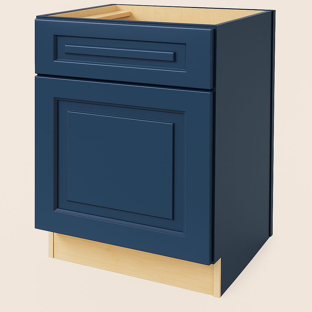 The Grayson base cabinet in Mythic Blue is a masterpiece of design and functionality, perfect for elevating your kitchen's aesthetic. Its deep blue finish exudes sophistication, while the soft-close mechanisms ensure a seamless and quiet experience. Pair it with brass hardware and marble countertops to create a timeless and luxurious space. This cabinet is not just a storage solution but a statement piece that transforms your kitchen into a haven of style and elegance.