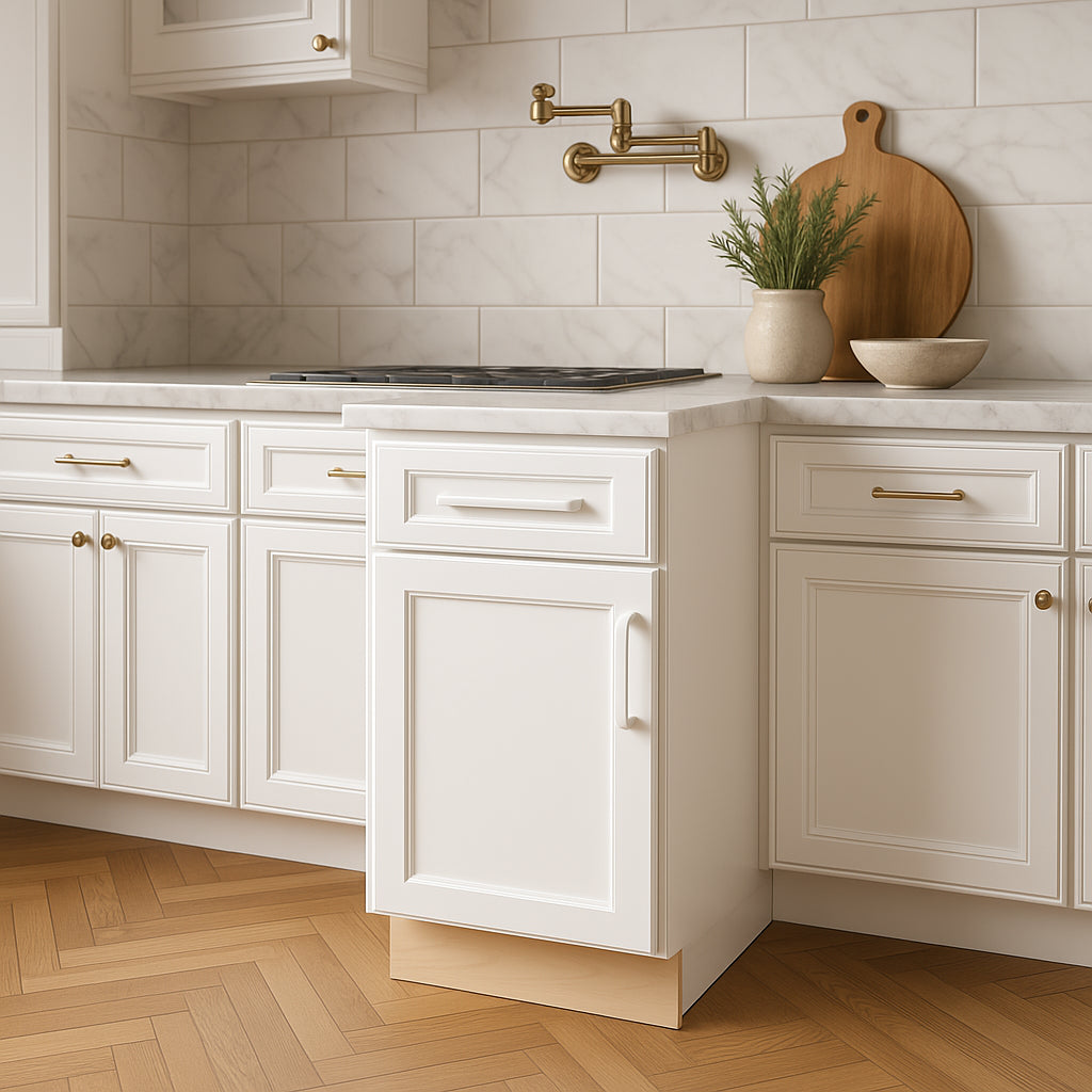 - Elegant Design: Finished in Pacific White with a raised panel shaker style, adding brightness to any kitchen.