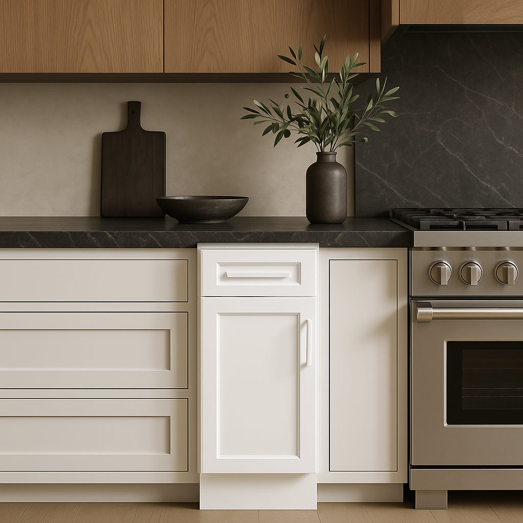 The Grayson cabinet is a masterpiece of functional elegance, designed to elevate your kitchen space. Its Pacific White finish and raised panel shaker style create a bright and inviting atmosphere, perfect for modern and classic interiors alike. Pair it with sleek countertops and stainless steel appliances for a harmonious look that exudes sophistication. This cabinet is not just a storage solution but a statement piece that transforms your kitchen into a luxurious haven.