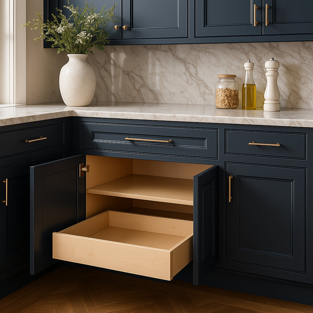 - Soft Close Functionality: Includes soft close doors and rollout trays for quiet and smooth operation.