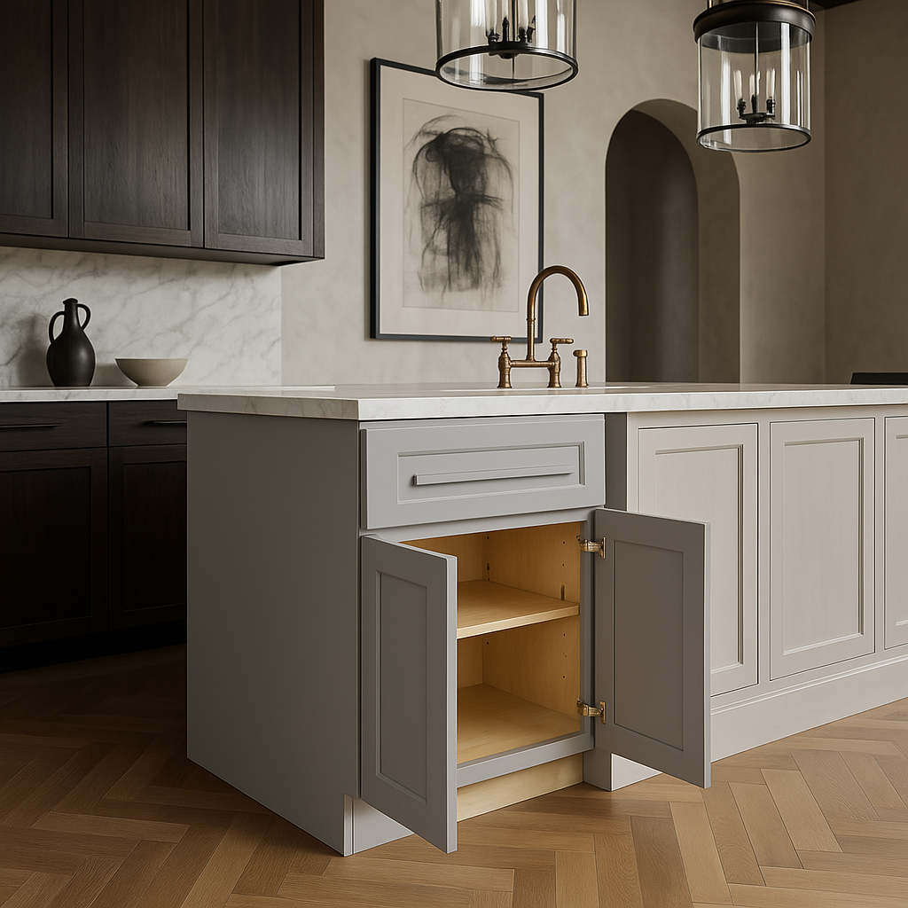 The Grayson Pearl Gray Base Kitchen Cabinet is a masterpiece of understated elegance, blending functionality with refined aesthetics. Its soft gray finish and shaker-style doors create a serene and sophisticated ambiance, perfect for modern and transitional kitchens alike. Pair it with bold accents or natural wood tones to craft a space that is both inviting and stylish. This cabinet is not just a storage solution but a statement piece that transforms your kitchen into a haven of luxury.
