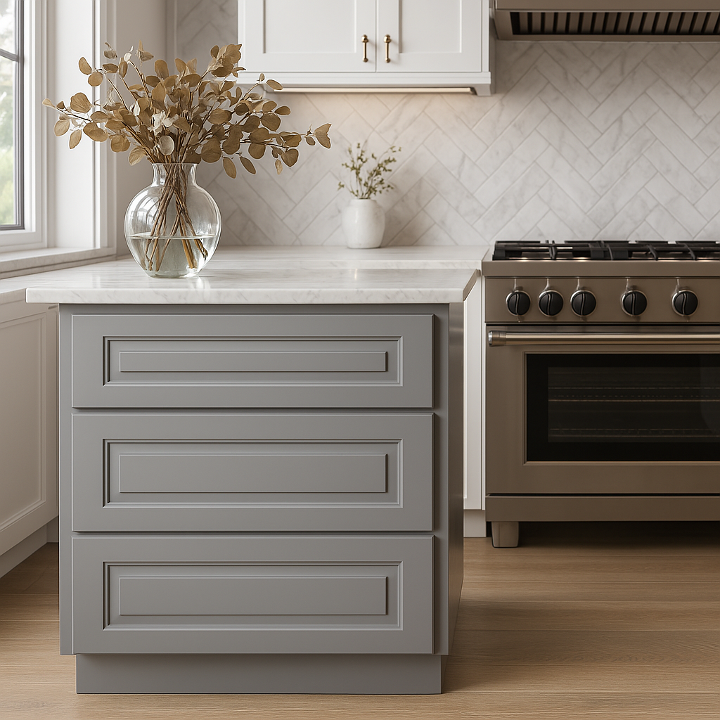 The Grayson Cooktop Base Cabinet is a masterpiece of modern kitchen design, blending functionality with aesthetic appeal. Its pearl gray finish and shaker-style design exude sophistication, while the soft-close drawers ensure a seamless user experience. Pair it with stainless steel appliances and a marble countertop to create a luxurious culinary space. This cabinet is not just a storage solution; it's a statement of refined taste.