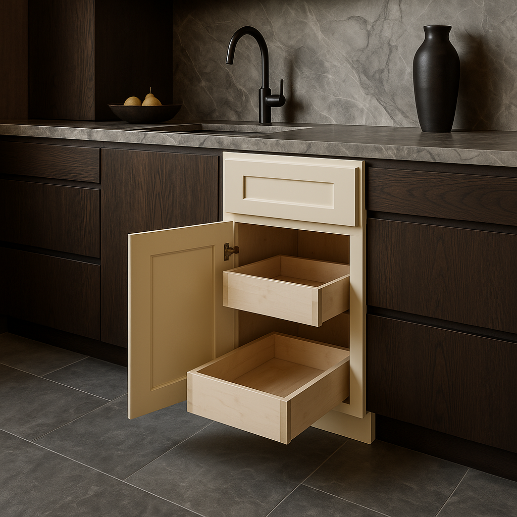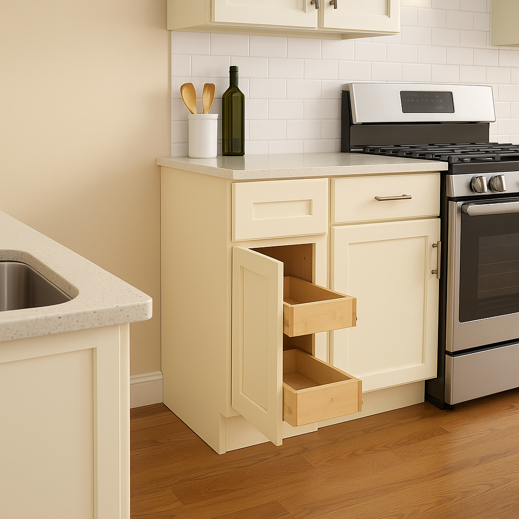 The Newport Blended Cream Plywood Base Cabinet combines timeless shaker-style design with modern functionality. Featuring durable all-plywood construction, soft-close technology, and a refined cream finish, this cabinet is perfect for enhancing any kitchen space.