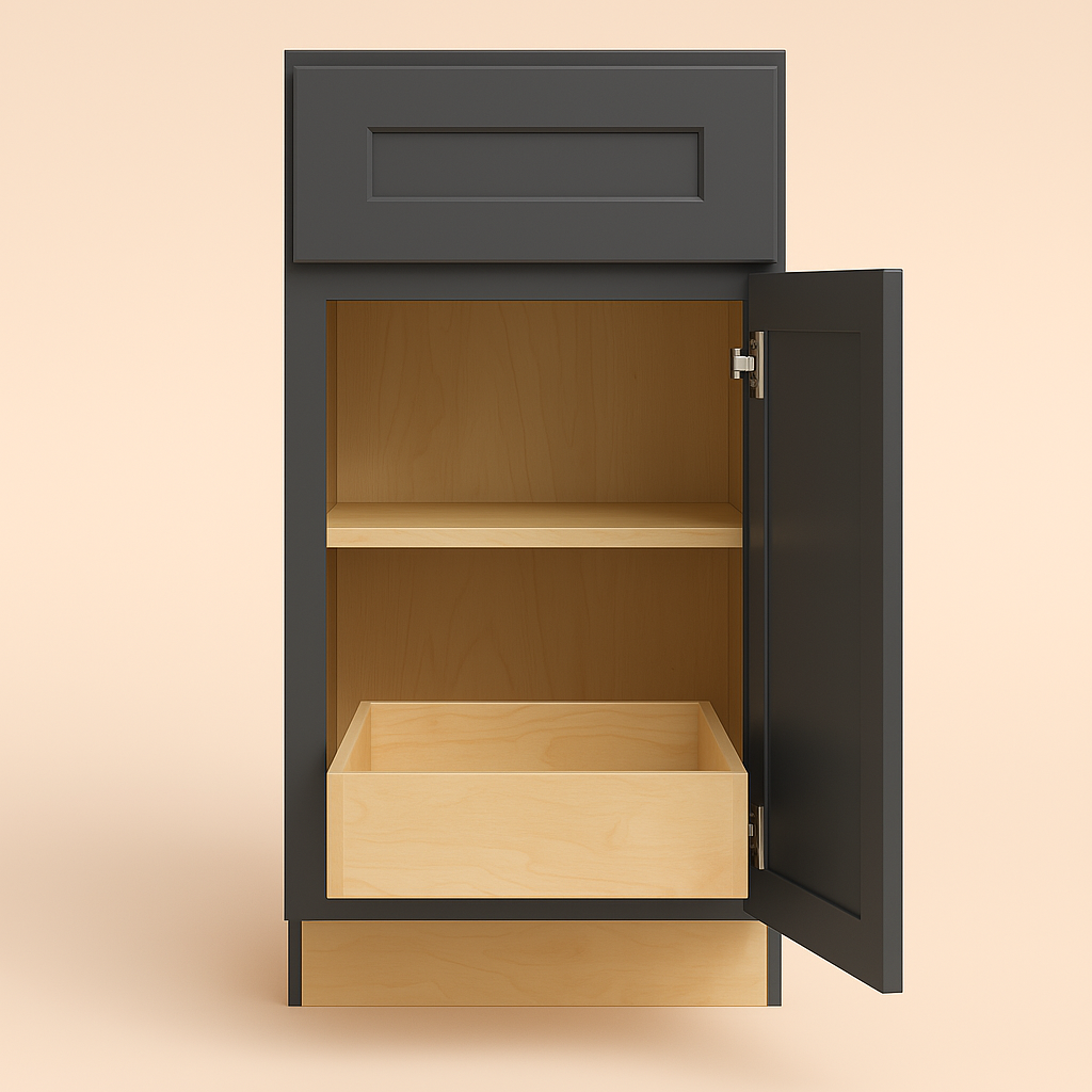 The Newport Deep Onyx Kitchen Cabinet is a masterpiece of modern design and functionality. Its deep onyx finish exudes sophistication, while the shaker-style doors add a timeless charm. Pair it with brass or matte black hardware to create a striking contrast that elevates your kitchen's aesthetic. This cabinet is not just a storage solution but a statement piece that transforms your culinary space into a haven of luxury.