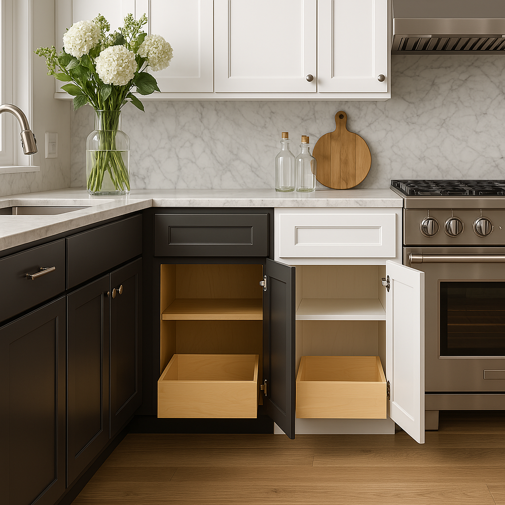 - Soft-Close Technology: Features 6-way adjustable door hinges and full extension drawer glides for quiet closing.