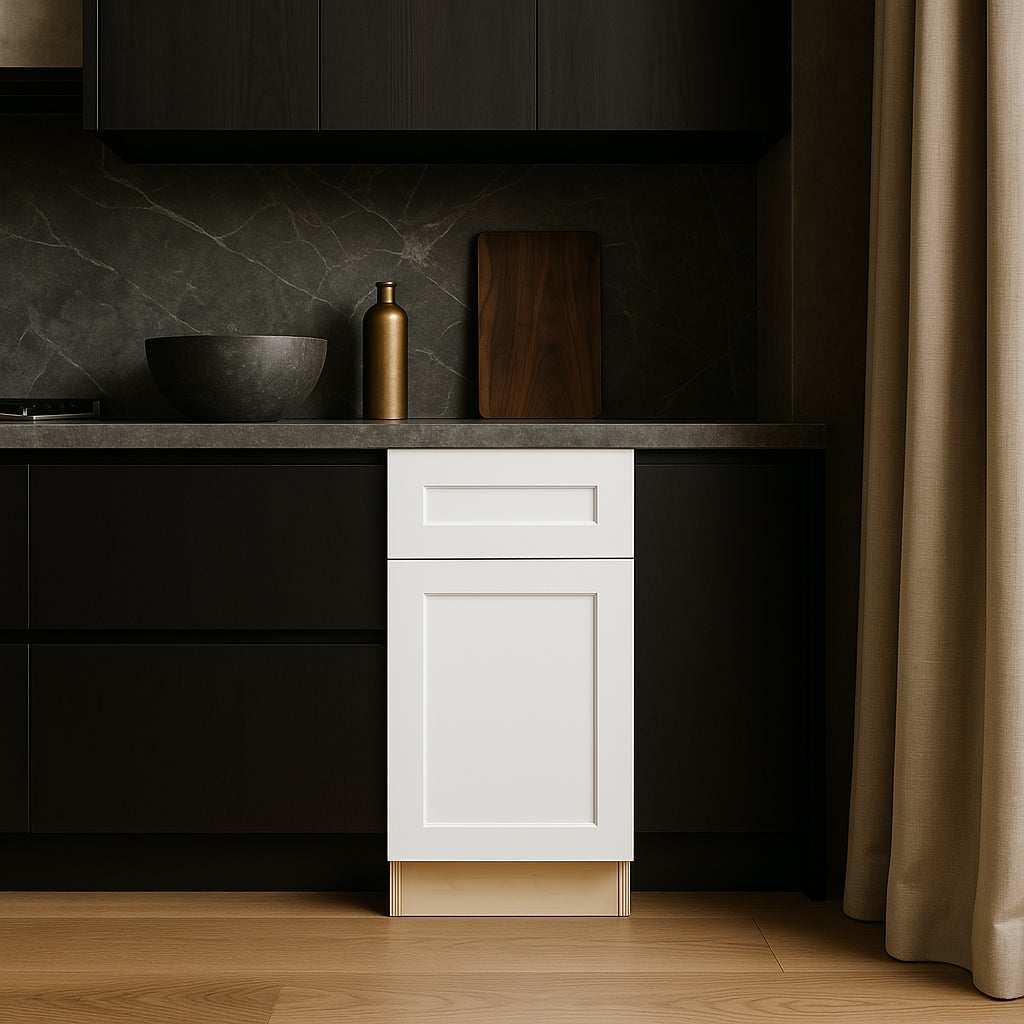 The Newport Base Cabinet in Pacific White is a masterpiece of modern kitchen design, blending functionality with aesthetic appeal. Its shaker-style doors and recessed panels create a harmonious balance of contemporary and classic, while the soft-close mechanisms add a touch of luxury. Pair it with a marble countertop to accentuate its clean lines and transform your kitchen into a serene and sophisticated space. This cabinet is not just a storage solution; it's a statement of refined taste.