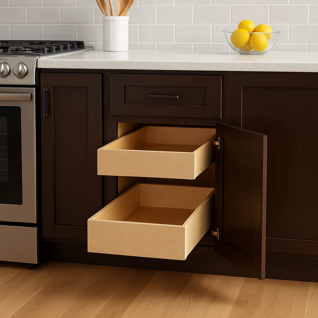 - Enhanced Accessibility: Features two hardwood dovetail rollout trays for easy access to stored items.