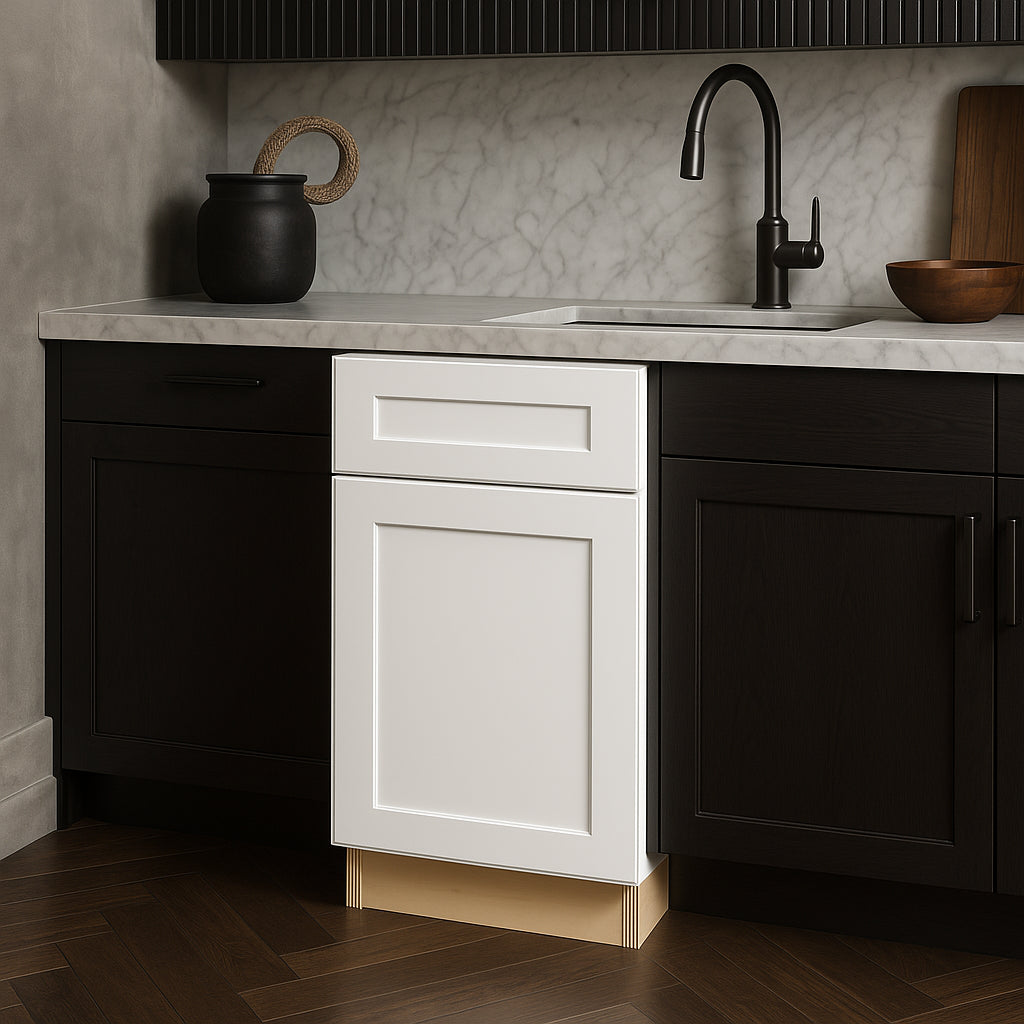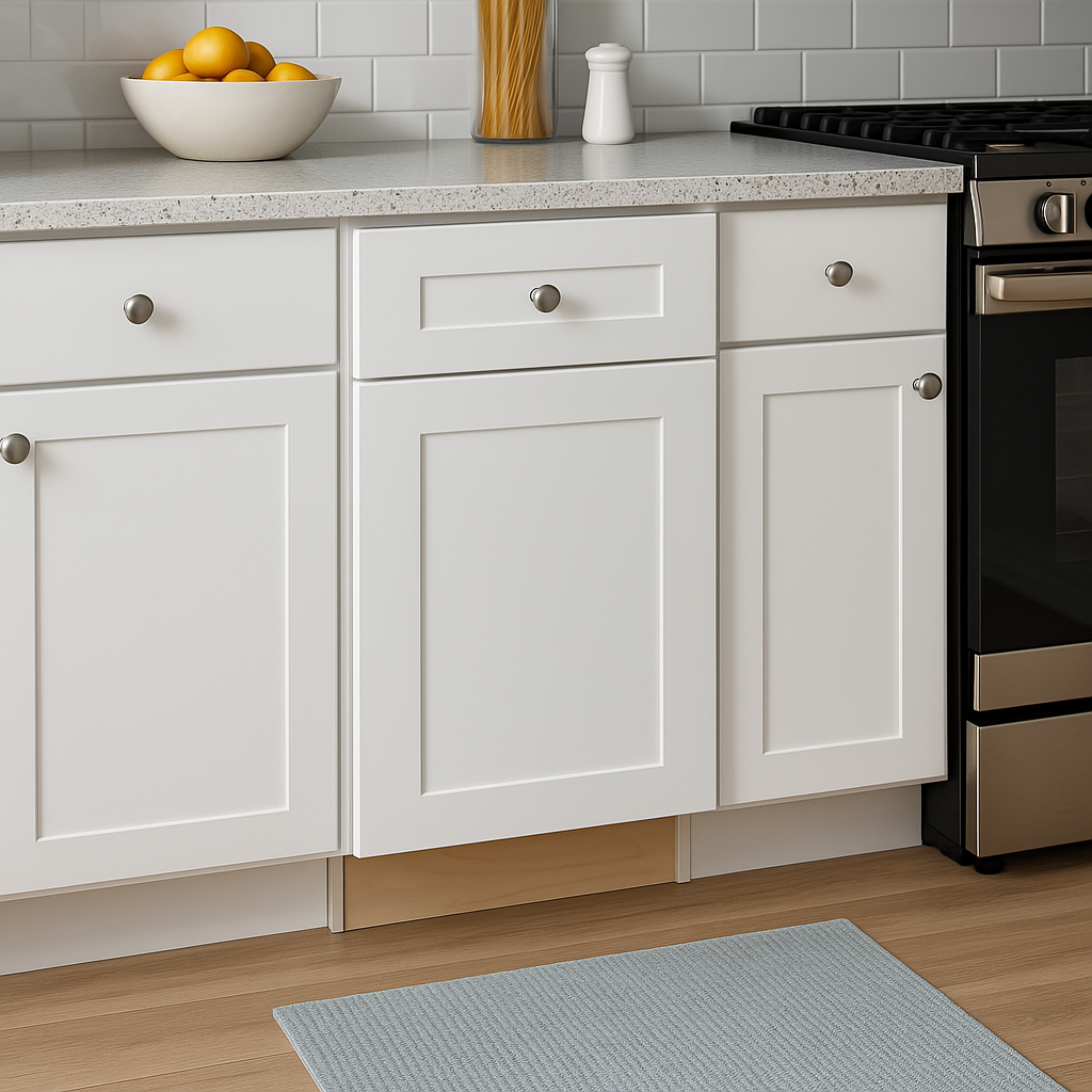 - Sleek Design: Features a clean Pacific White finish with 3" wide shaker doors for a modern aesthetic.
