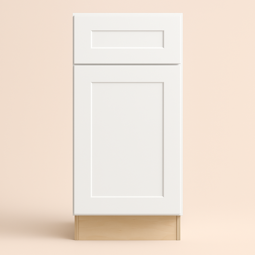 The Newport Base Kitchen Cabinet redefines classic elegance with its crisp Pacific White finish and timeless shaker design. This piece invites light and space into your kitchen, effortlessly transforming even the simplest setting into a sophisticated haven. Highlighted by its geometric 3" frames, it stands as a hallmark of modern design simplicity. Pair it with brushed gold hardware and sleek countertops to create a kitchen that exudes elegance, positioning the Newport cabinet as the cornerstone of luxurious yet understated living.