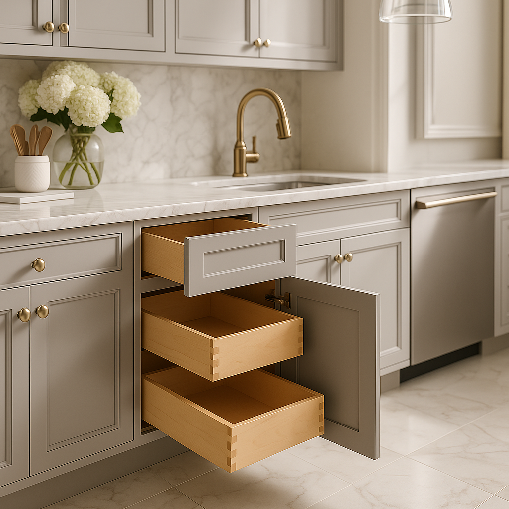 • Soft-Close Functionality: Includes soft-close drawers and concealed hinges for seamless, quiet operation.