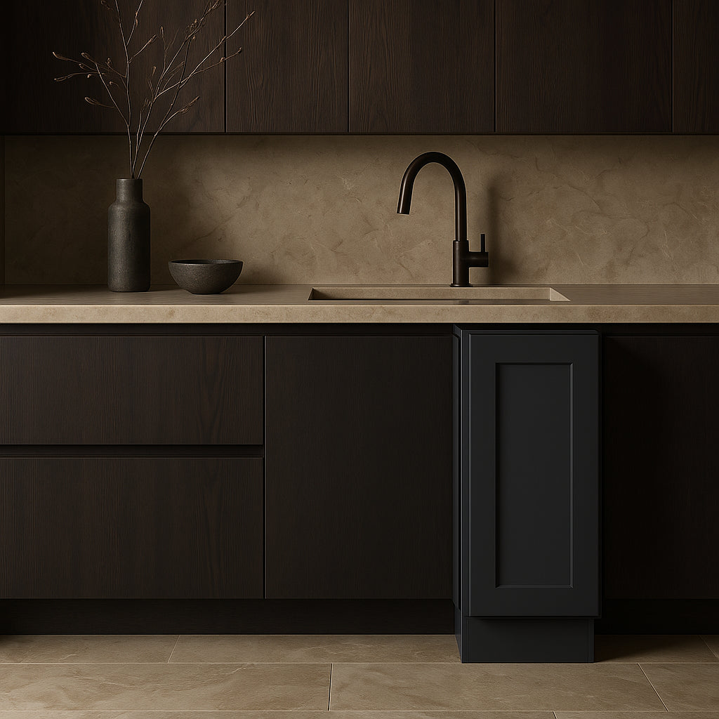 The Newport Full Height Door Base Kitchen Cabinet in Deep Onyx is a masterpiece of modern design and functionality. Its shaker-style doors with recessed panels bring a timeless geometric clarity to your kitchen, while the bold onyx finish adds a touch of sophistication. Pair it with brass or stainless steel hardware to create a striking contrast that enhances its visual appeal. This cabinet is not just a storage solution but a statement piece that transforms your kitchen into a luxurious haven.