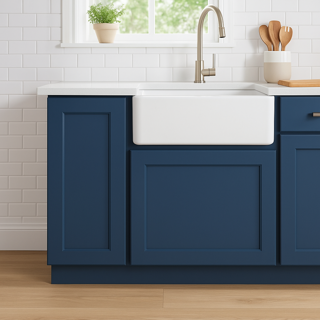 The Newport Kitchen Cabinet in Mythic Blue is a statement of refined elegance and practical design. Its bold, deep blue finish adds a touch of sophistication, while the shaker-style doors provide a timeless aesthetic. Pair it with stainless steel hardware and open shelving to create a modern, inviting kitchen space. This cabinet is not just a storage solution but a centerpiece that elevates the ambiance of your home.