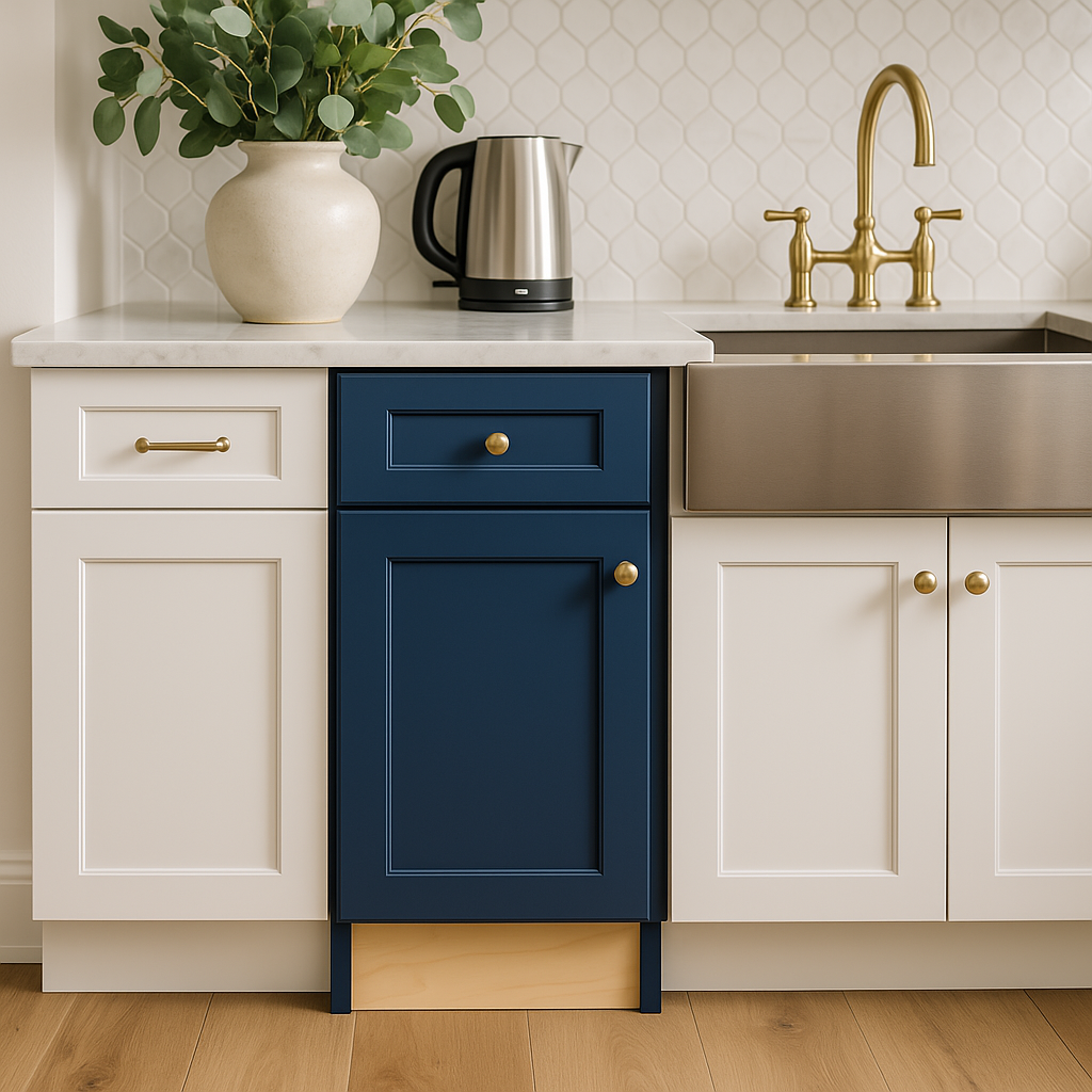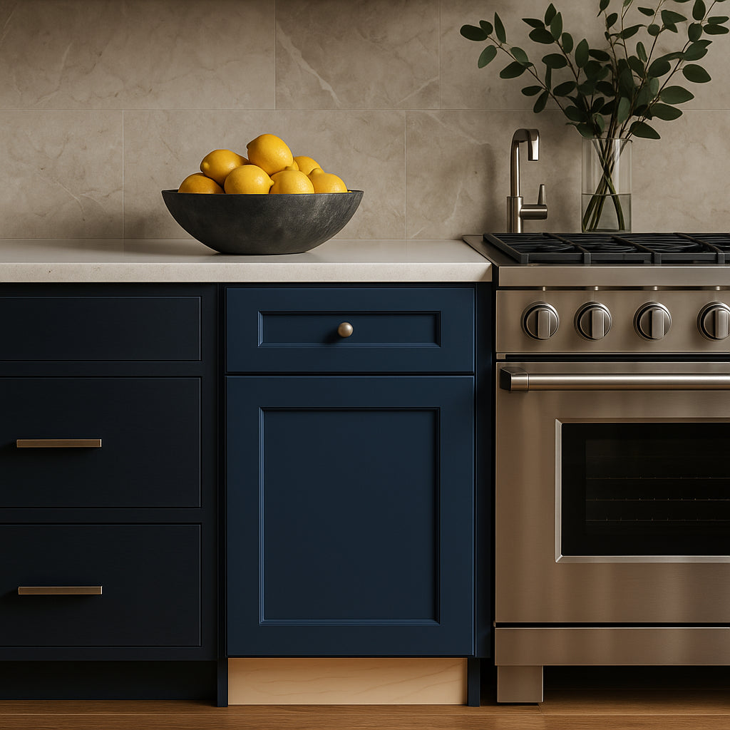 The Newport Mythic Blue cabinet is a masterpiece of design and functionality, bringing a bold yet timeless aesthetic to your kitchen. Its rich Mythic Blue finish pairs beautifully with metallic accents, creating a sophisticated and versatile look. The shaker-style doors and soft-close features ensure a seamless blend of style and practicality. This cabinet is not just a storage solution but a statement piece that elevates the heart of your home.