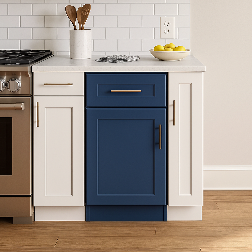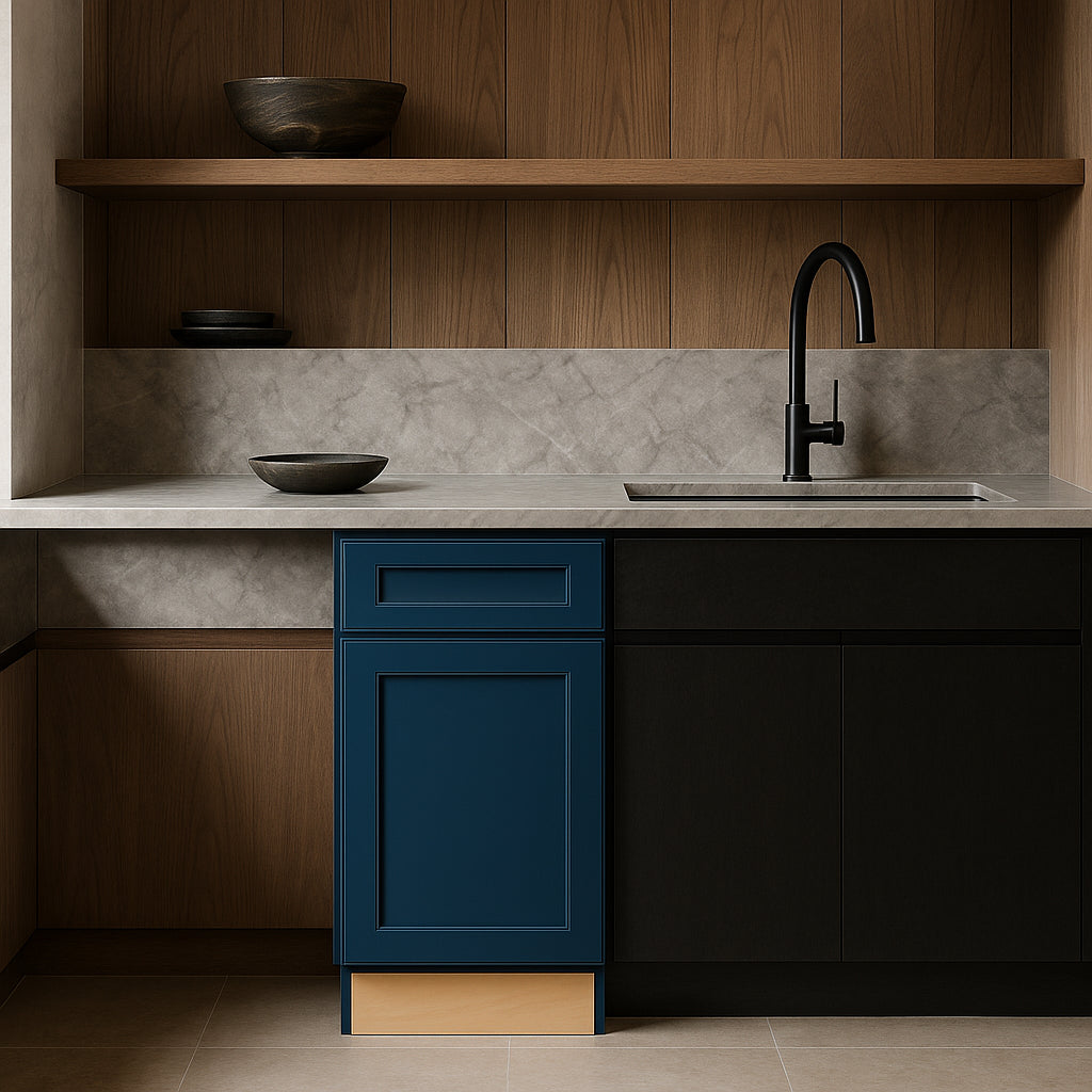 - Elegant Design: Shaker-style doors with a bold mythic blue finish.