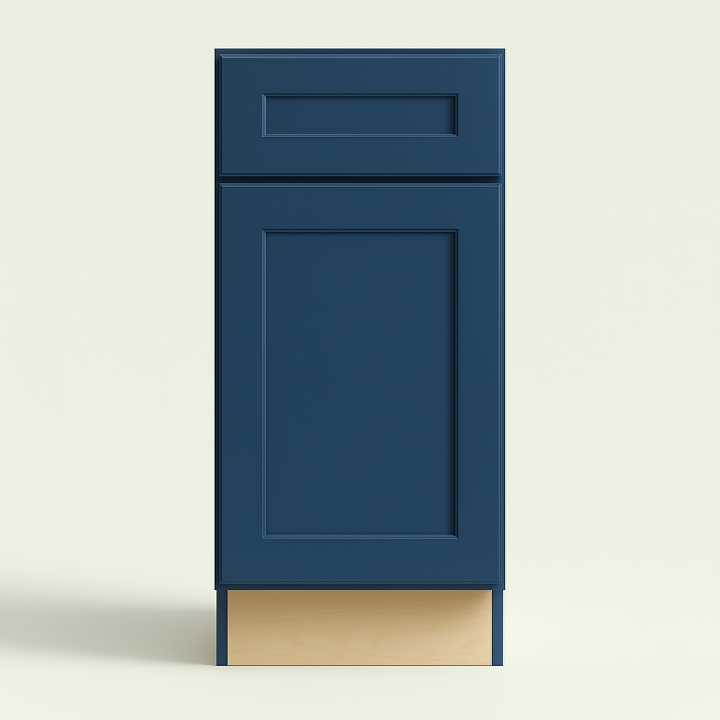 The Mythic Blue Base Kitchen Cabinet is a statement of bold elegance, transforming your kitchen into a space of refined sophistication. Its rich mythic blue finish and Shaker-style design create a timeless aesthetic that pairs beautifully with brushed gold hardware for a regal touch. Use it to anchor your kitchen's design, complementing light countertops and warm wood accents. This cabinet is not just functional but a centerpiece of luxurious living.