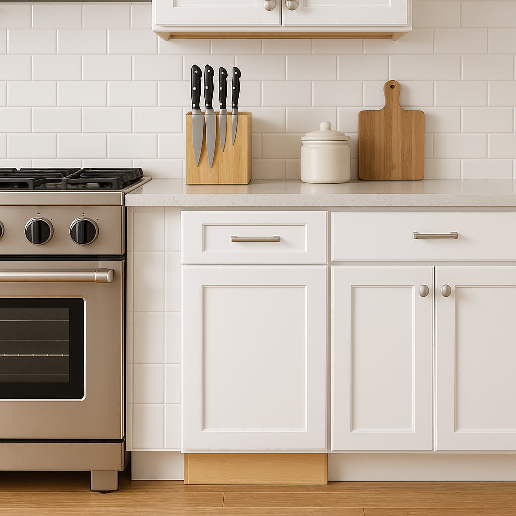 - Sleek Aesthetics: Painted Pacific White finish and clean shaker style complement any kitchen decor.