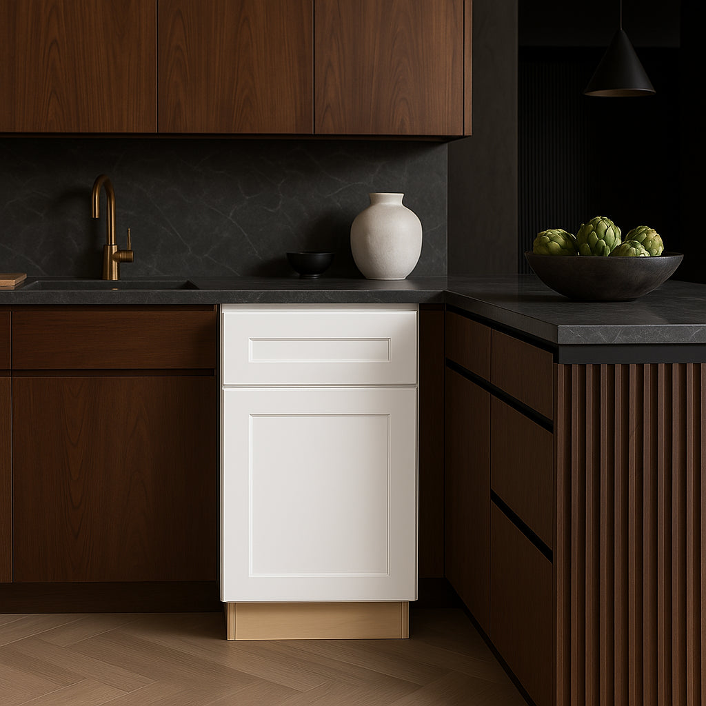 The Newport Base Kitchen Cabinet in Pacific White is a masterpiece of modern design, blending functionality with aesthetic appeal. Its shaker-style frame and pristine finish create a bright and inviting atmosphere, perfect for contemporary kitchens. Pair it with bold accents or natural wood tones to craft a space that exudes sophistication and warmth. This cabinet is not just a storage solution but a statement piece that transforms your kitchen into a haven of style and comfort.