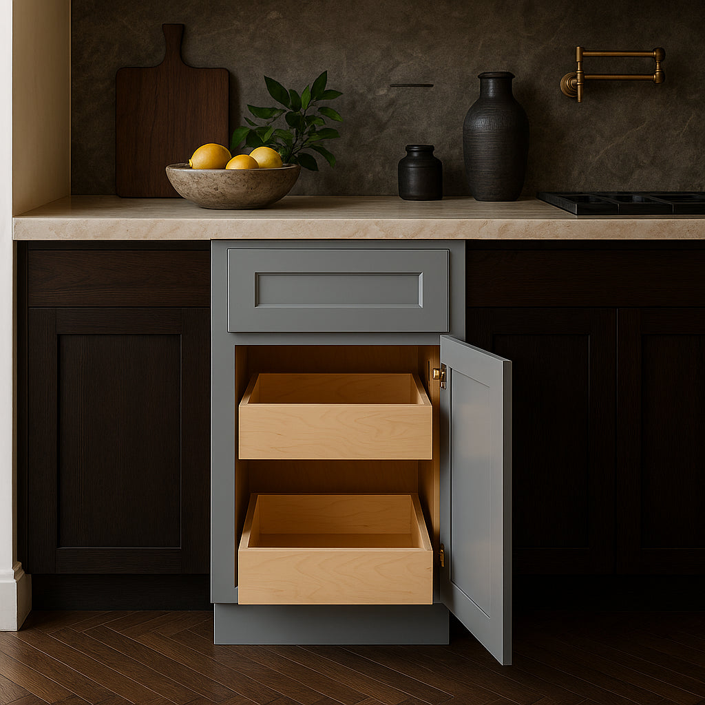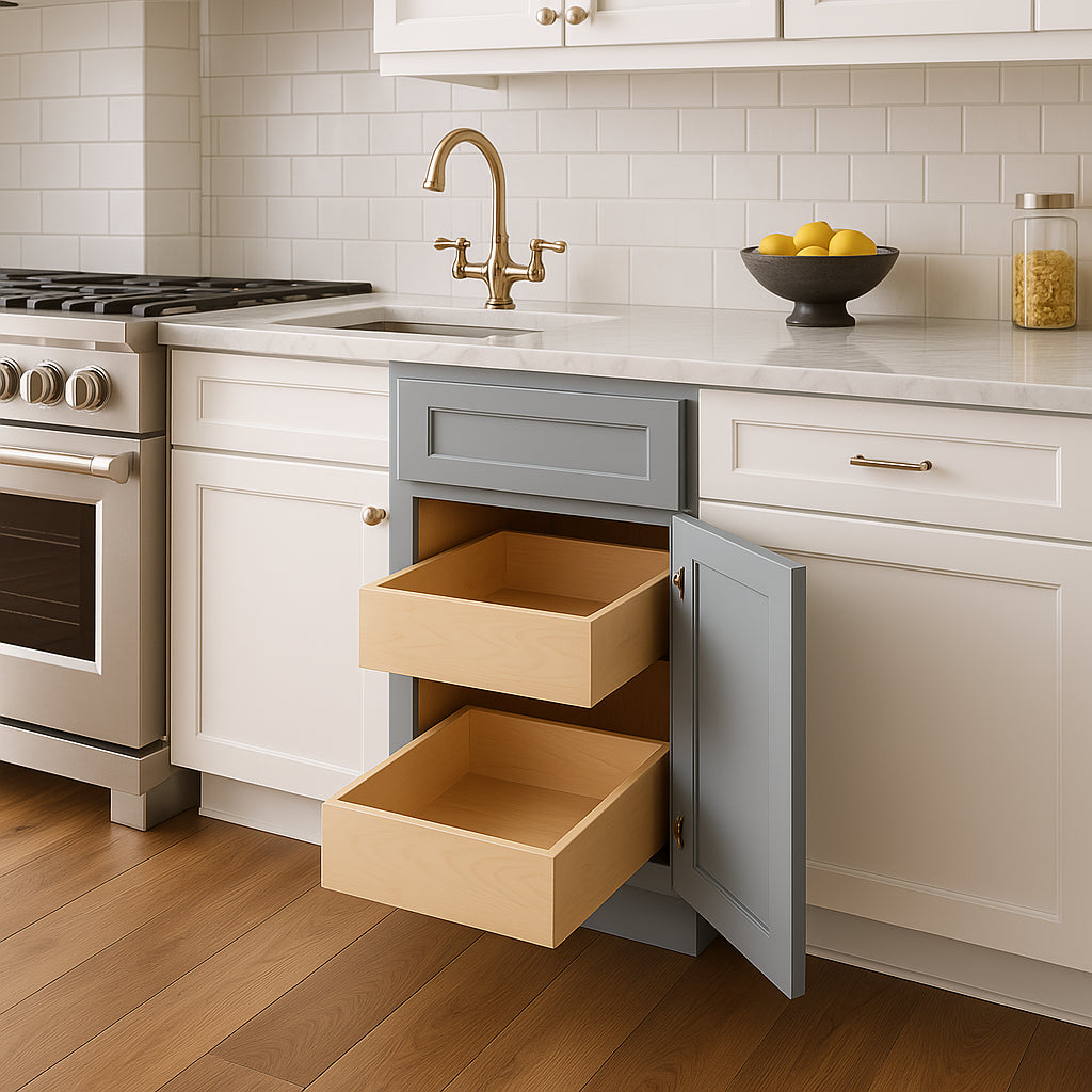- Soft-Close Functionality: Includes soft-close roll-out trays and drawers for smooth operation.