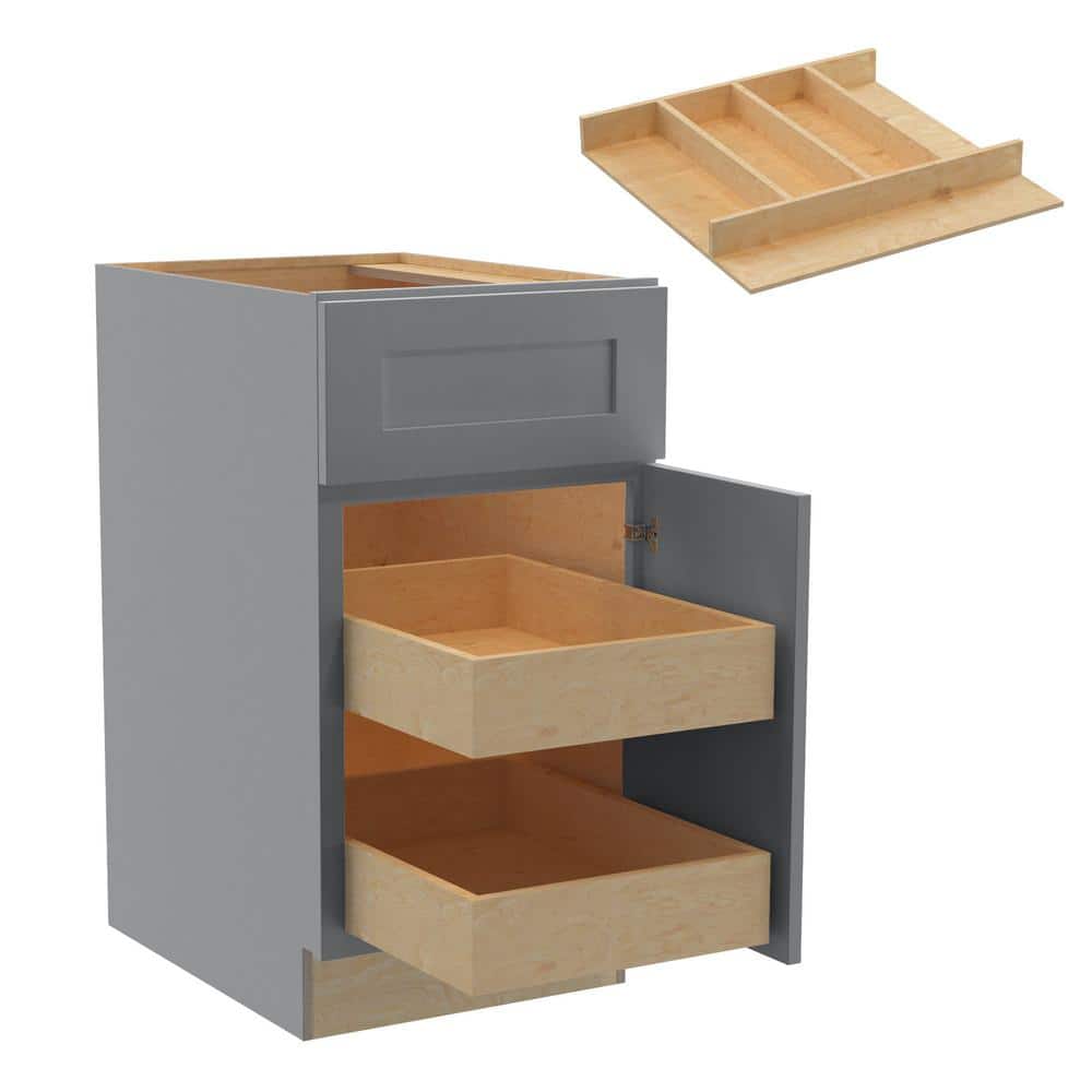 The Newport Pearl Gray Base Kitchen Cabinet combines durable all-plywood construction with a sleek, modern design. Featuring soft-close roll-out trays and shaker-style doors, this cabinet is both functional and stylish, perfect for enhancing any kitchen space.