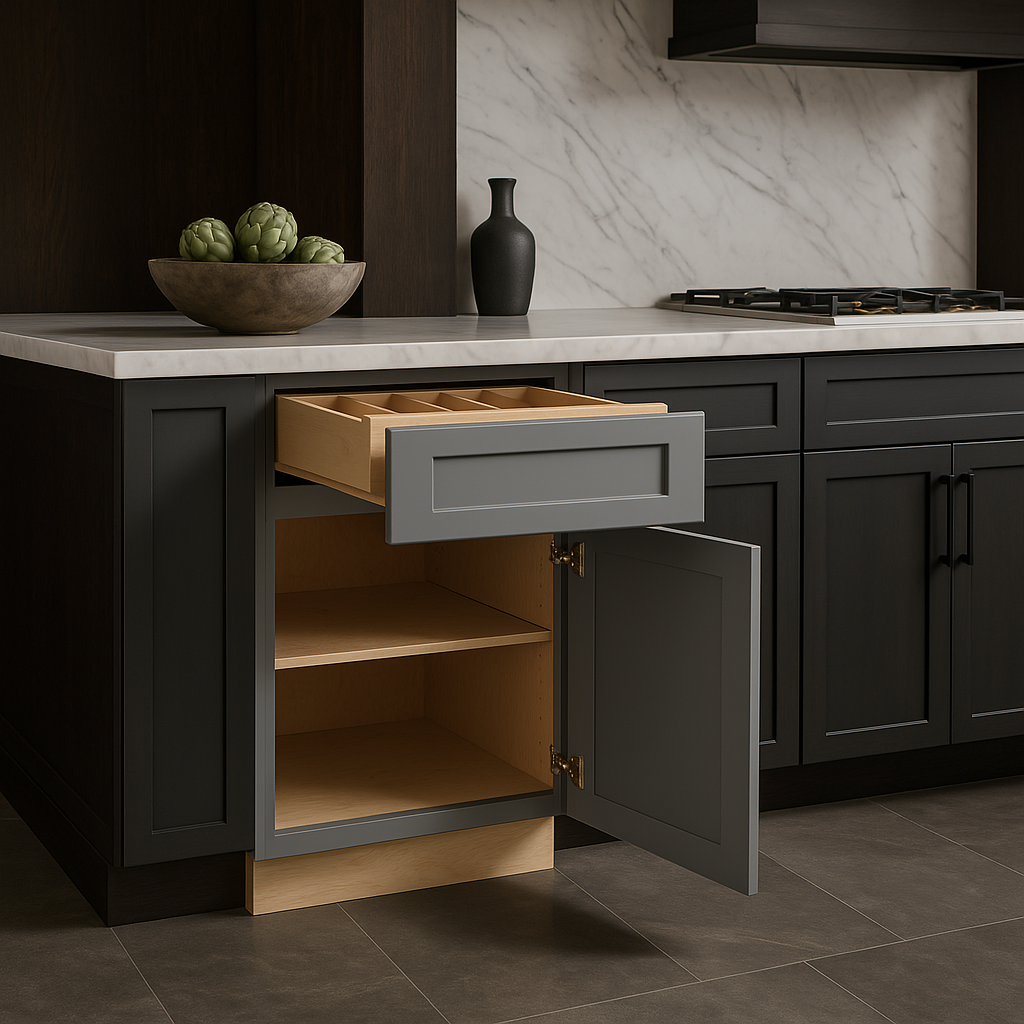 - Soft-Close Efficiency: Quiet soft-close doors and full-extension drawer runners.