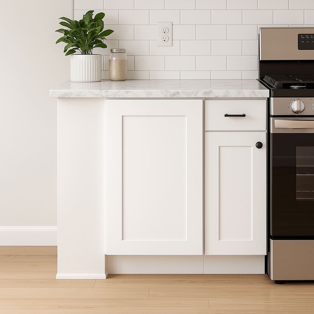- Modern Design: Features Shaker-style doors with a flat recessed center panel for a clean aesthetic.