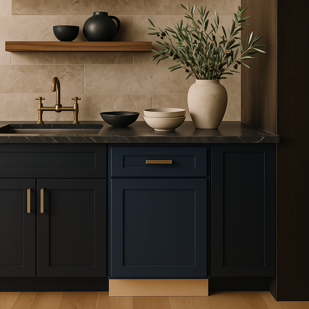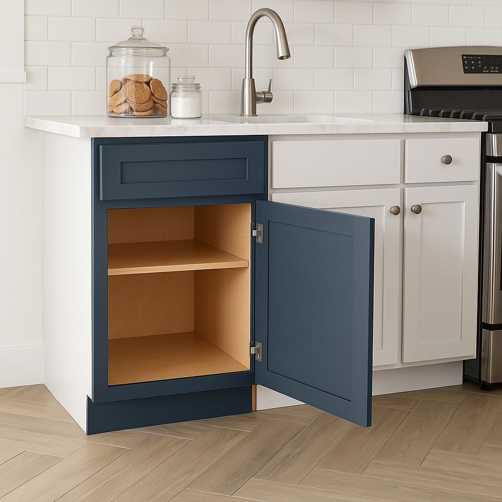 - Stylish Design: Mythic Blue shaker-style doors with a recessed center panel.