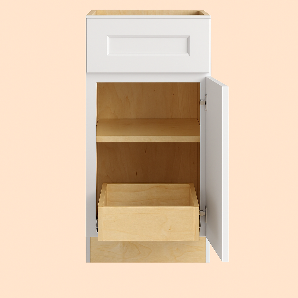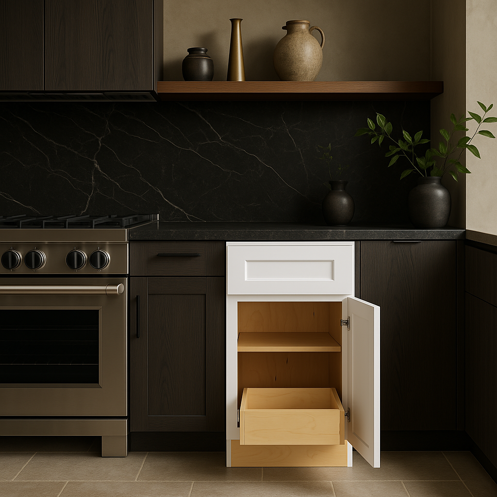 - Functional Features: Includes soft-close right-handed door and full-extension dovetail drawer.