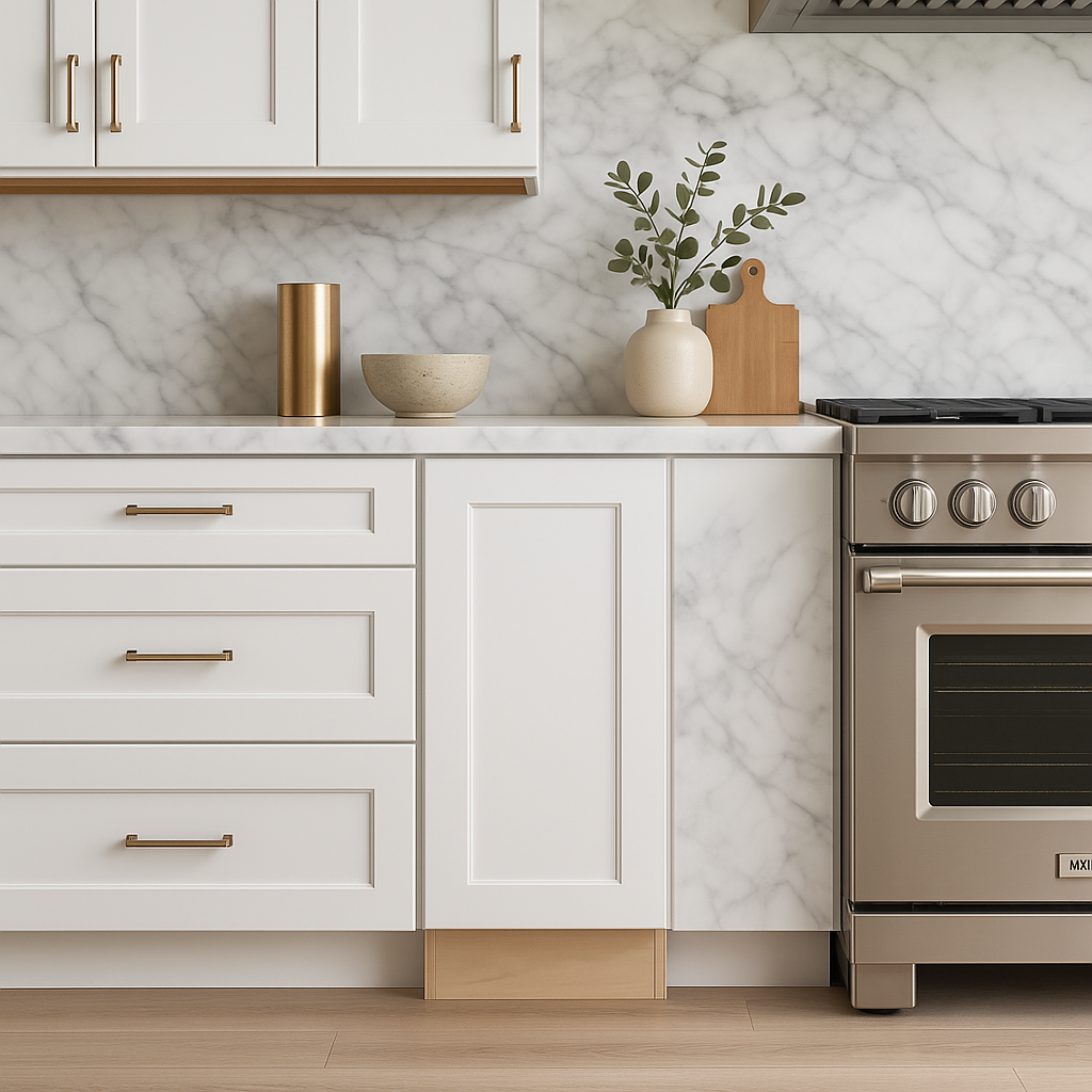 - Stylish Design: Shaker-inspired doors with 3-inch frames create a bold and timeless look.