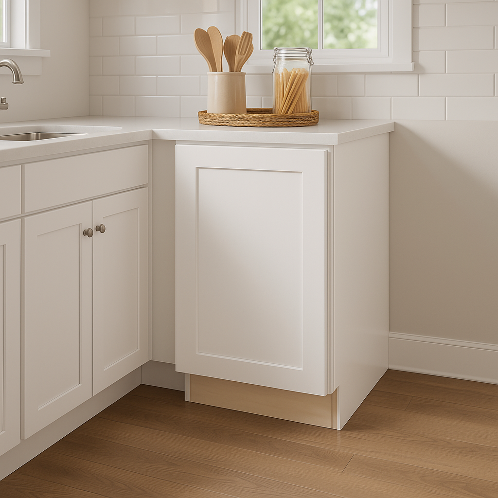 The Newport Kitchen Cabinet by Home Decorators Collection combines modern shaker-style design with durable all-plywood construction. Its Pacific White finish adds a bright, airy feel to any kitchen, while soft close doors and adjustable shelves provide practical functionality.
