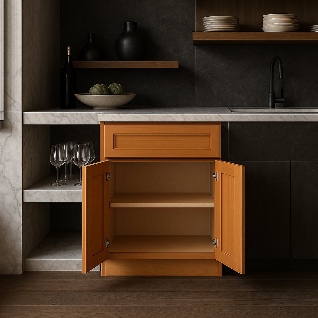The Newport Plywood Base Kitchen Cabinet combines durable CARB II compliant plywood construction with elegant shaker-inspired design. Featuring soft-close technology and adjustable shelves, this cabinet offers both style and functionality for your kitchen.