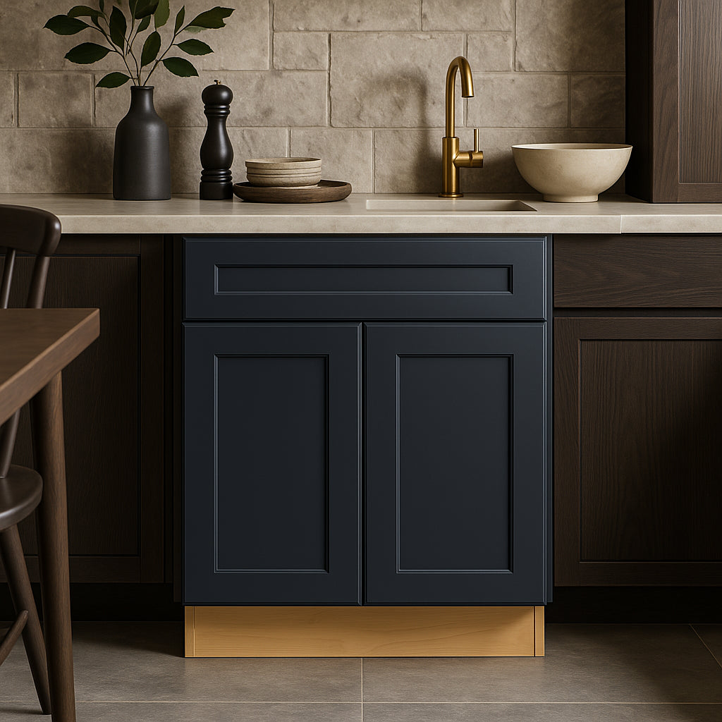 The Newport Deep Onyx Cabinet is a masterpiece of modern kitchen design, blending bold aesthetics with practical functionality. Its striking onyx finish and Shaker-inspired doors create a streamlined yet impactful look, perfect for contemporary spaces. Pair it with lighter tones or metallic accents to highlight its dramatic edge. This cabinet is not just a storage solution but a statement piece that elevates the sophistication of any kitchen.