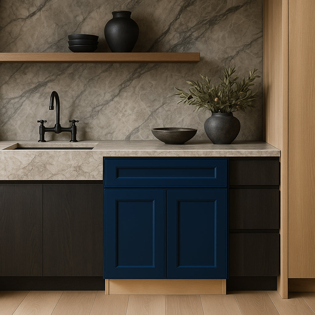 The Newport Mythic Blue Kitchen Cabinet is a masterpiece of modern design, blending bold aesthetics with practical functionality. Its Shaker-style doors and Mythic Blue finish create a striking visual impact, perfect for pairing with stainless steel appliances or marble countertops. The soft-close features and adjustable shelving ensure a seamless and adaptable kitchen experience. This cabinet is not just a storage solution but a statement piece that elevates the heart of your home.