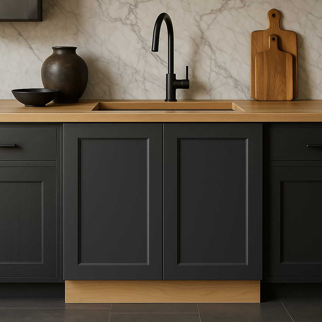 - Sleek Design: Features Shaker-inspired doors with a flat recessed center panel finished in deep onyx.