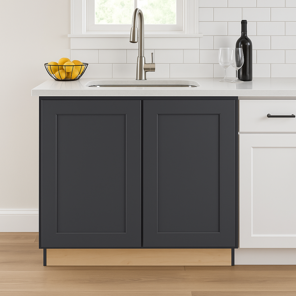 The Newport Deep Onyx Kitchen Base Cabinet combines durable plywood construction with a sleek shaker-style design. Featuring soft-close doors and adjustable shelving, it offers both functionality and timeless elegance for modern kitchens.
