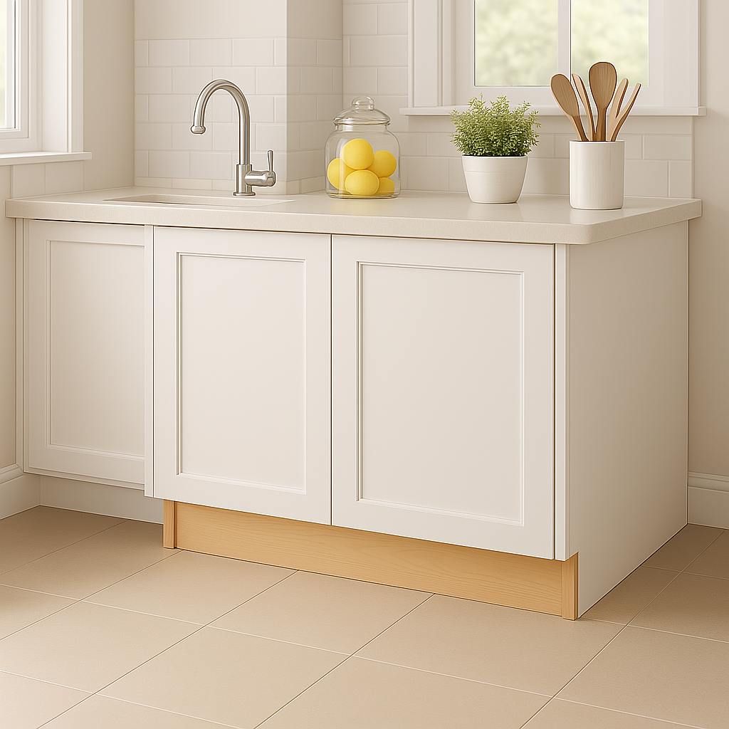 The Newport Pacific White Kitchen Cabinet combines durable plywood construction with a shaker-style design for a clean, modern look. Its painted finish and adjustable shelves make it a versatile and functional addition to any kitchen.