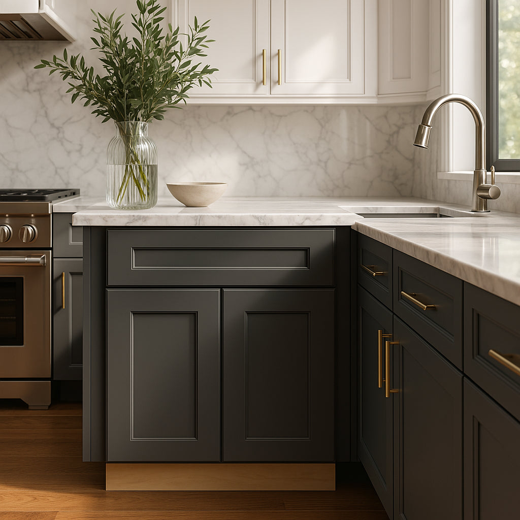 The Newport Deep Onyx Cabinet is a masterpiece of modern kitchen design, blending bold aesthetics with functional elegance. Its rich, dramatic hue and shaker-style doors create a striking visual impact, perfect for contemporary spaces. Pair it with light countertops and stainless steel appliances to achieve a stunning contrast that highlights its sophisticated charm. This cabinet is not just a storage solution but a statement piece that transforms your kitchen into a luxurious haven.