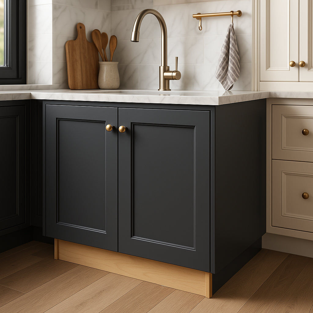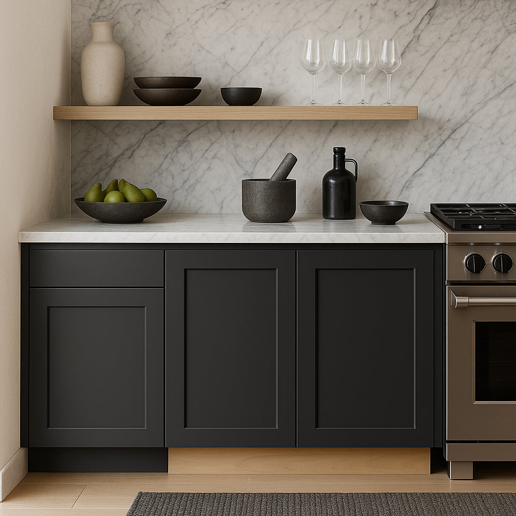 • Design: Shaker-style doors with 3-inch wide frames for a bold, geometric aesthetic