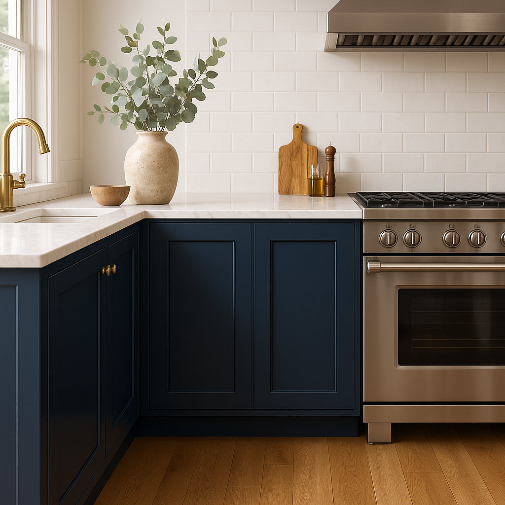 - Elegant Design: Features shaker-style doors with flat recessed panels and a bold geometric style.