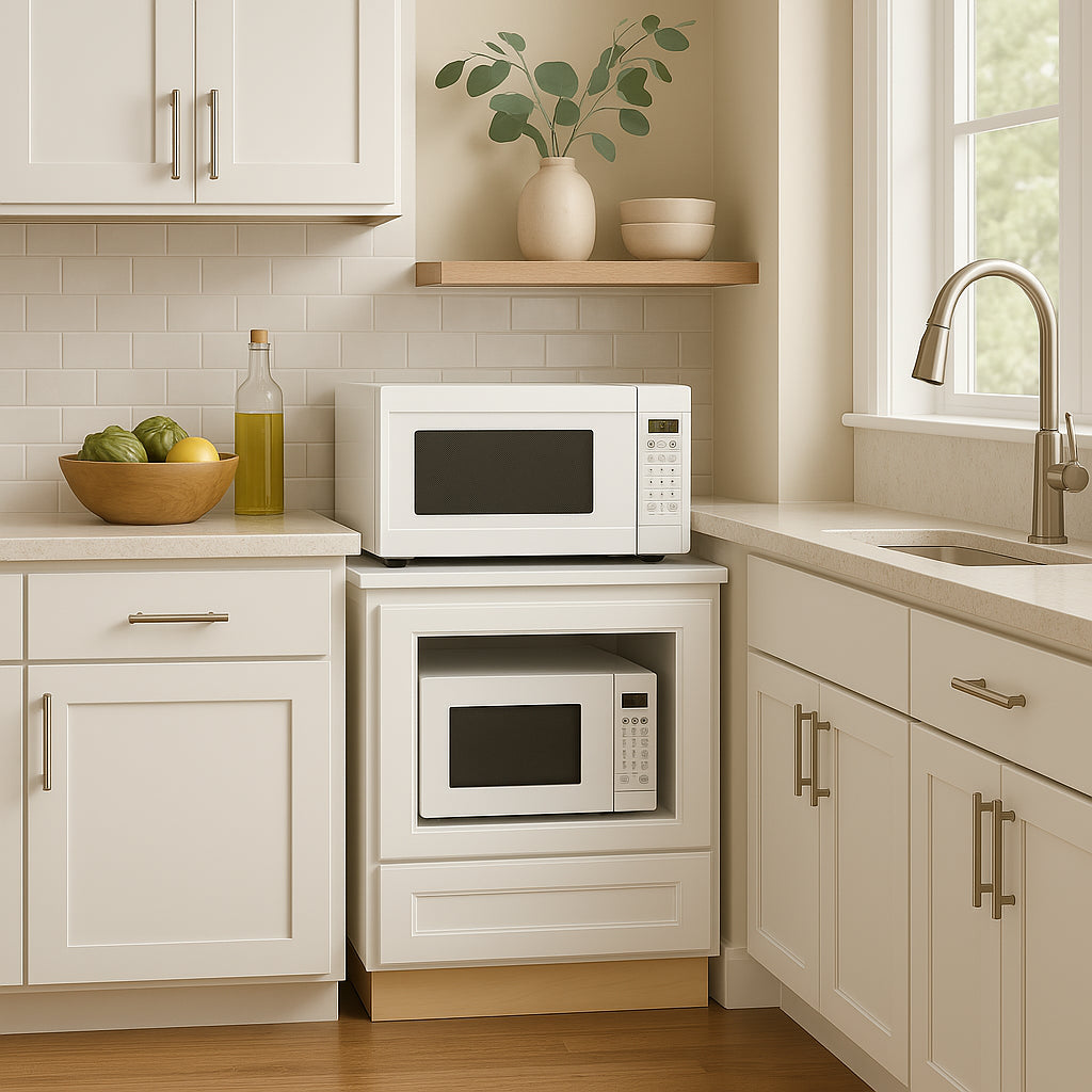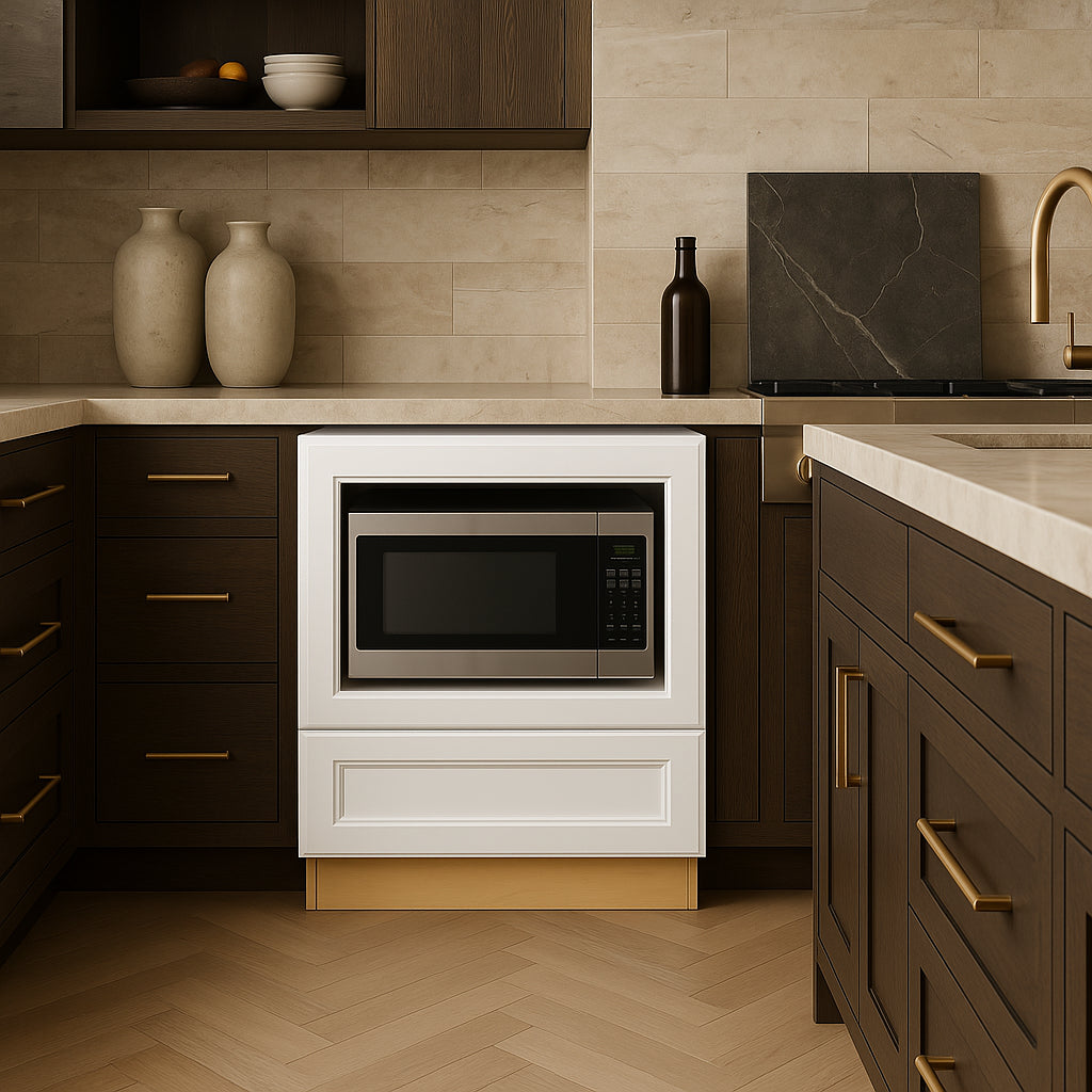 The Newport Microwave Base Cabinet combines premium all-plywood construction with a painted finish for durability and timeless style. Featuring soft-close doors and drawers, adjustable shelves, and dovetail joints, it offers both functionality and elegance.